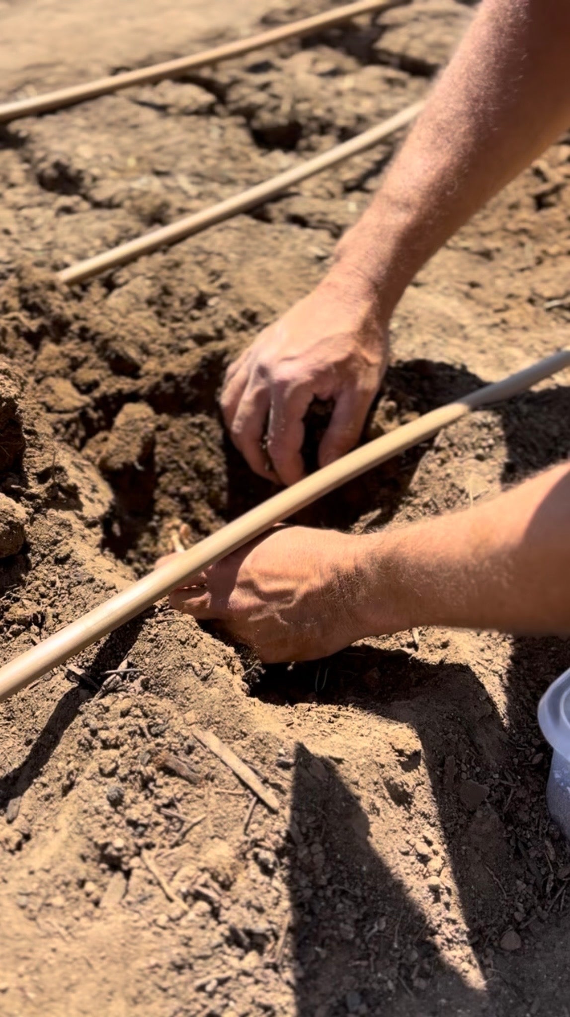 - Wooden stakes + twine corral