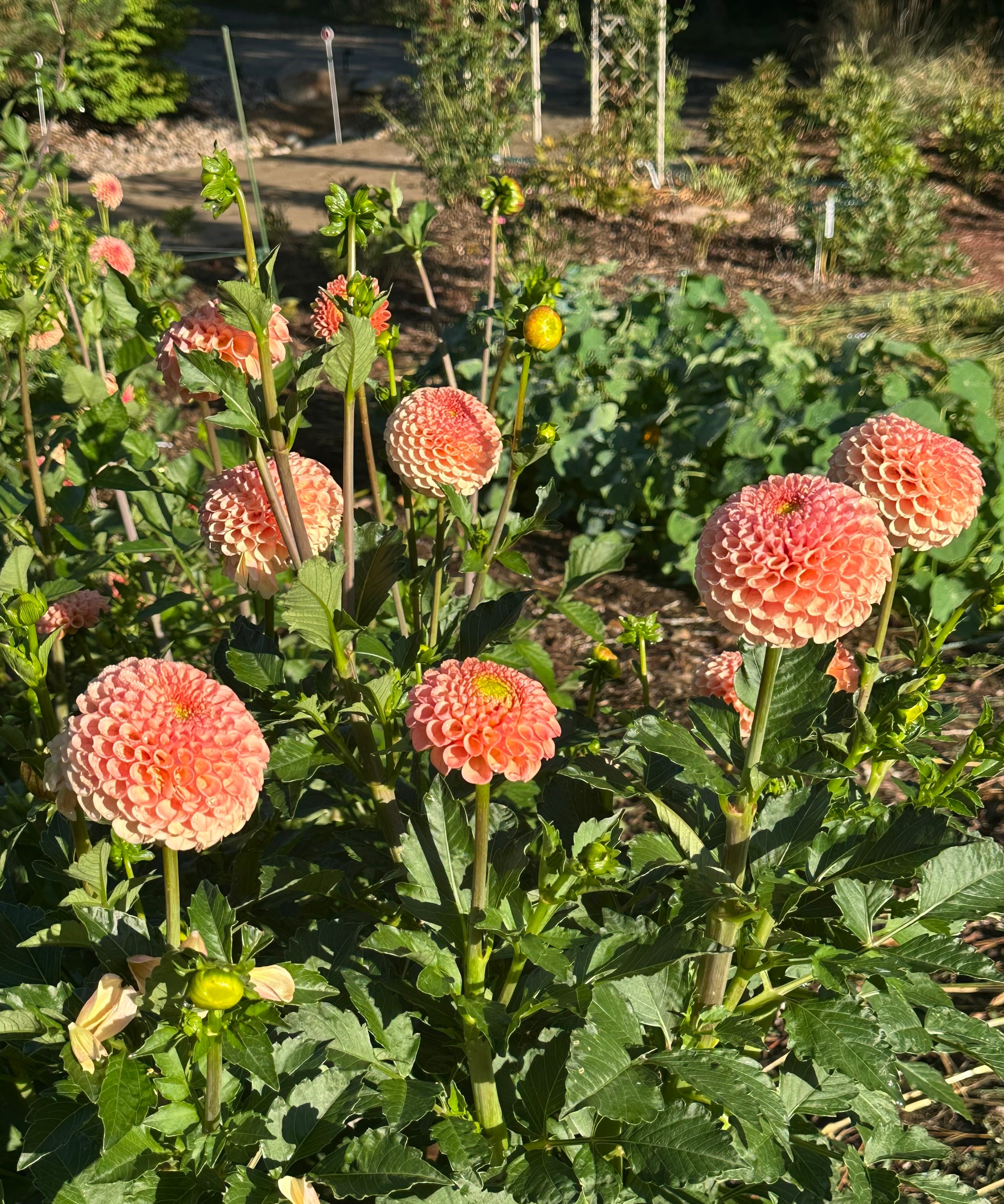 Most dahlias reach 4–5ft+ by August and require support.